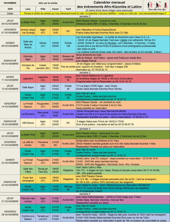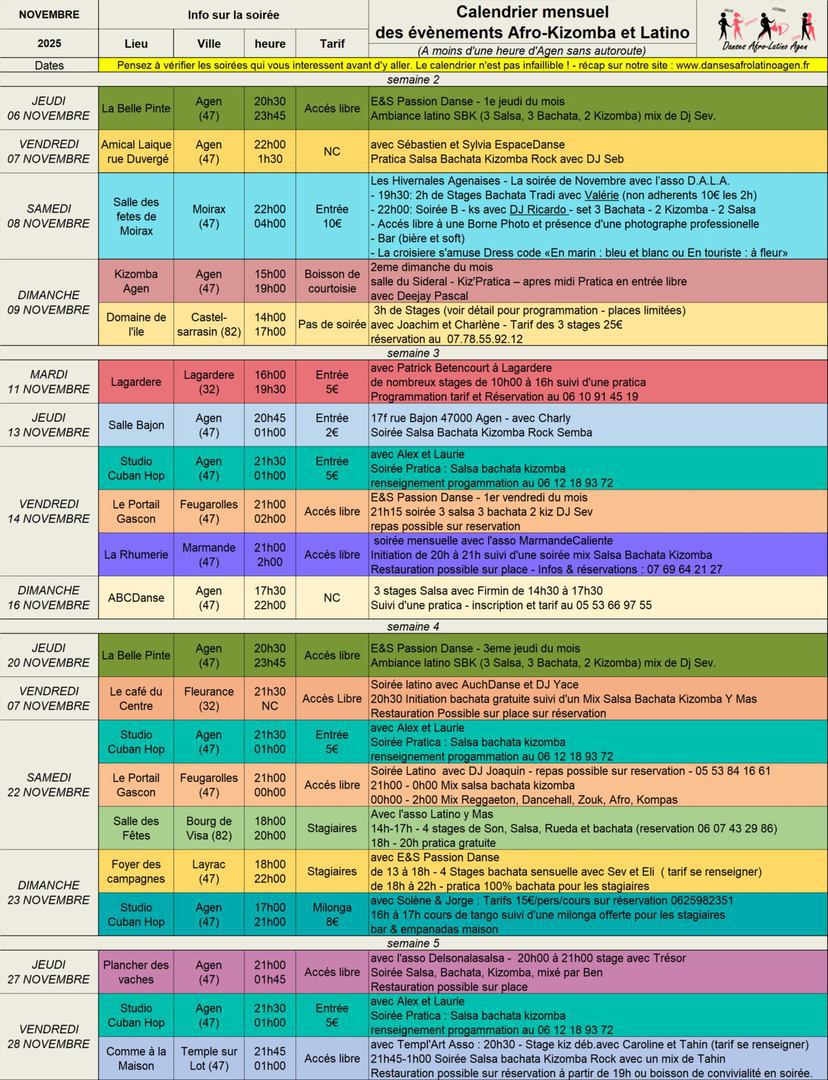 Soirées SBK Lot et Garonne et alentours - Novembre 2025