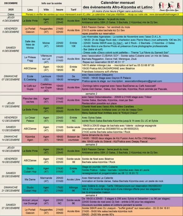 Soirées SBK Lot et Garonne et alentours - Décembre 2025