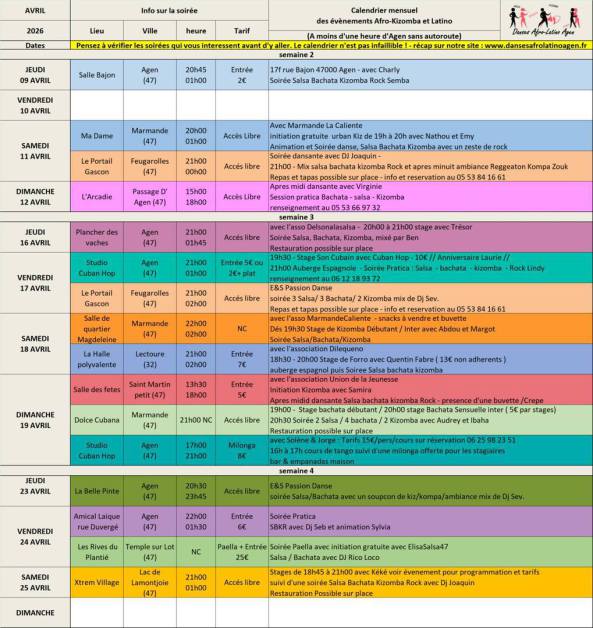 Soirées SBK Lot et Garonne et alentours - AVRIL 2026